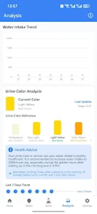 YL Pee Hydra is een gebruiksvriendelijke applicatie die is ontworpen om gebruikers te helpen bij het beheren van hun dagelijkse waterinname. De app stelt je in staat om je waterconsumptie en urineren bij te houden, wat bijdraagt aan een beter inzicht in je fysieke gezondheid. Door deze gegevens te registreren, kun je je hydratatieniveau optimaliseren en gezondere gewoonten ontwikkelen.